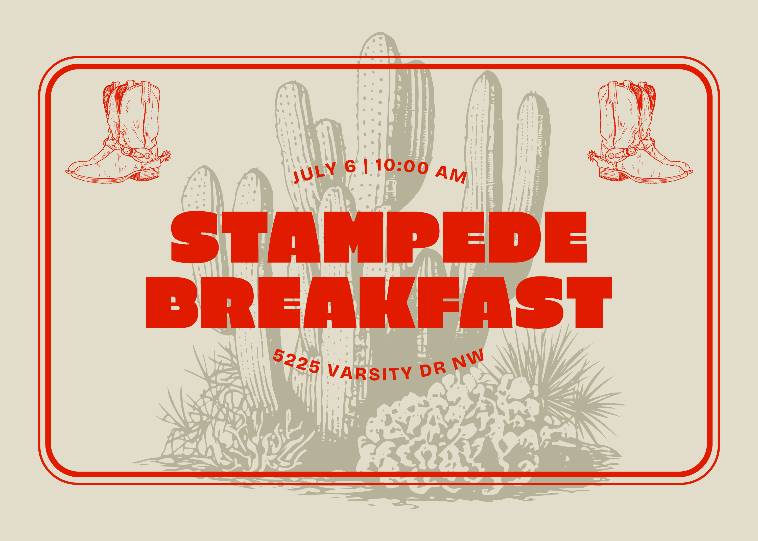 Westminster Presbyterian Church 290 Edgepark Blvd NW, Calgary, AB, CanadaJoin us before church for a Stampede Breakfast in our parking lot! We're planning a hearty breakfast and room to eat it together. Y'all come!