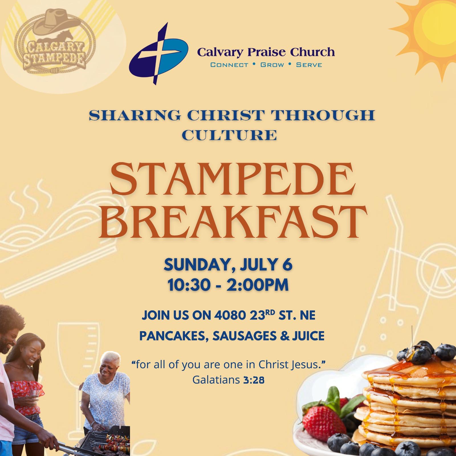 Calvary Grace Church 204 6a Street NE, Calgary, Alberta, CanadaShine up those boots and dust off them hats, Calvary Grace is hosting a Stampede Breakfast on Sunday, July 14 from 9:30–10:20 AM. Join us in our courtyard for pancakes and coffee. You're also invited to our worship service at 10:45 AM.